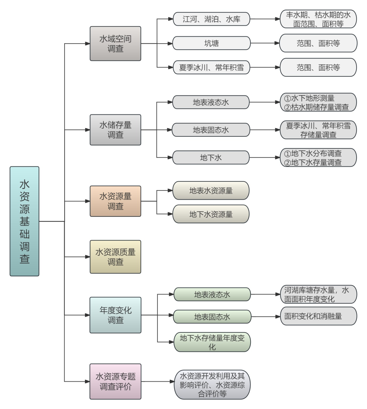 ¶ÔµØ±íҺ̬ˮÖü´æÁ¿¡¢µØ±í¹Ì̬ˮÖü´æÁ¿ºÍµØÏÂË®Öü´æÁ¿¾ÙÐÐÊӲ죬£¬£¬£¬£¬£¬ÊӲ칤¾ß¡¢ÄÚÈݺÍÊÖÒÕÒªÁìÈçÏÂͼËùʾ¡£¡£¡£¡£