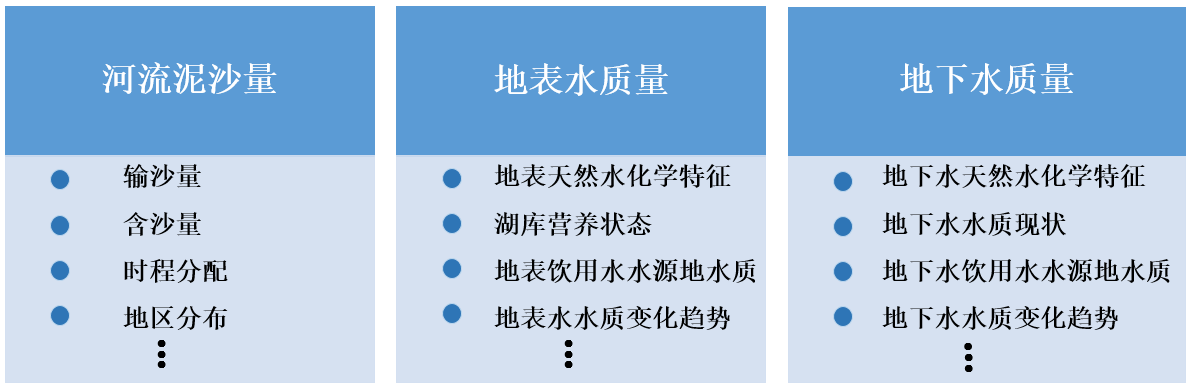 Ë®×ÊÔ´ÖÊÁ¿ÊÓ²ìÄÚÈݰüÀ¨ºÓÁ÷ÄàɳÁ¿ÊӲ졢µØ±íË®×ÊÔ´ÖÊÁ¿ÊӲ졢µØÏÂË®×ÊÔ´ÖÊÁ¿ÊӲ죬£¬£¬£¬£¬£¬Ö÷ÒªÊÓ²ìÖ¸±êÈçÏÂͼËùʾ¡£¡£¡£¡£
